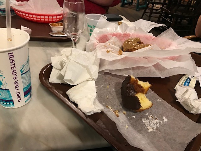 After exploring the Badlands, we took a trip to the notorious Wall Drug, a kitschy roadside attraction in Wall, SD. Wall Drug is an old western-style collection of souvenir stores, gemstone shops, other places where you can buy things that may have belonged to a hoarder, and a restaurant where they sell the most delightful homemade donuts ever.