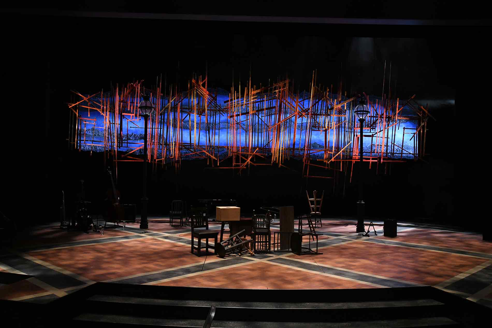 We opened Once this past weekend, and praise is already pouring in for this stunning production. Once is all about the power of music, featuring a cast of talented actors that also play their own instruments on stage. Their talent is certainly paramount in this production, but they are supported by an evocative set design by Michael Schweikardt complemented by Colin K. Bills’ gorgeous lighting. Check out the photos below that show the set as it evolves from the original concepts, through the process of building it, to its final state, in action for our beautiful cast.